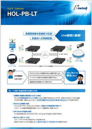 4K(UHD)対応 非圧縮 / 軽圧縮伝送、小型 多ポート SDI/IP Gateway装置 HOL-PB-LT をご紹介させて頂きます。