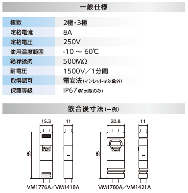 防水型は篏合状態でIP67に対応しております。