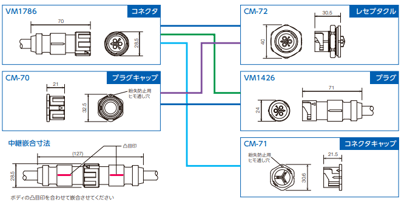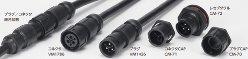 機器用、中継用、デイジーチェーン用コネクタを取り揃え、